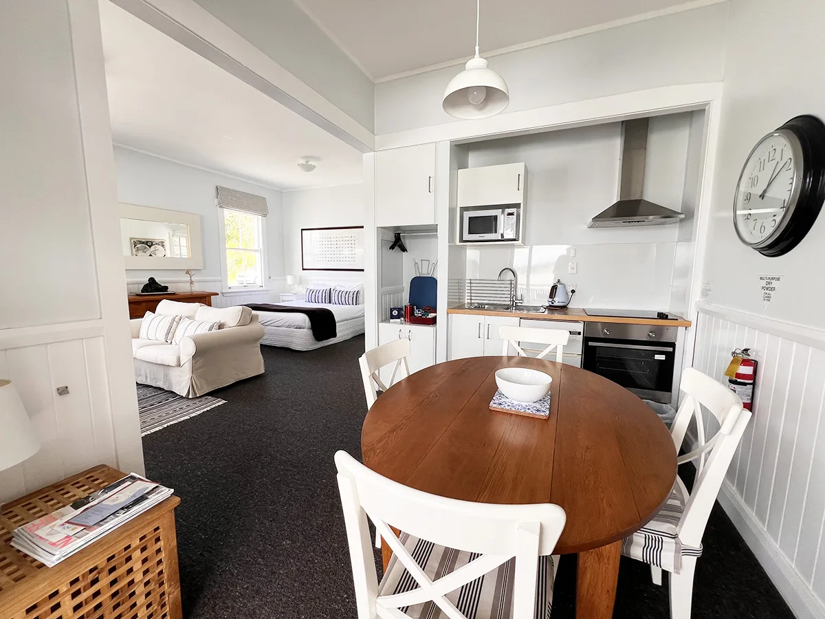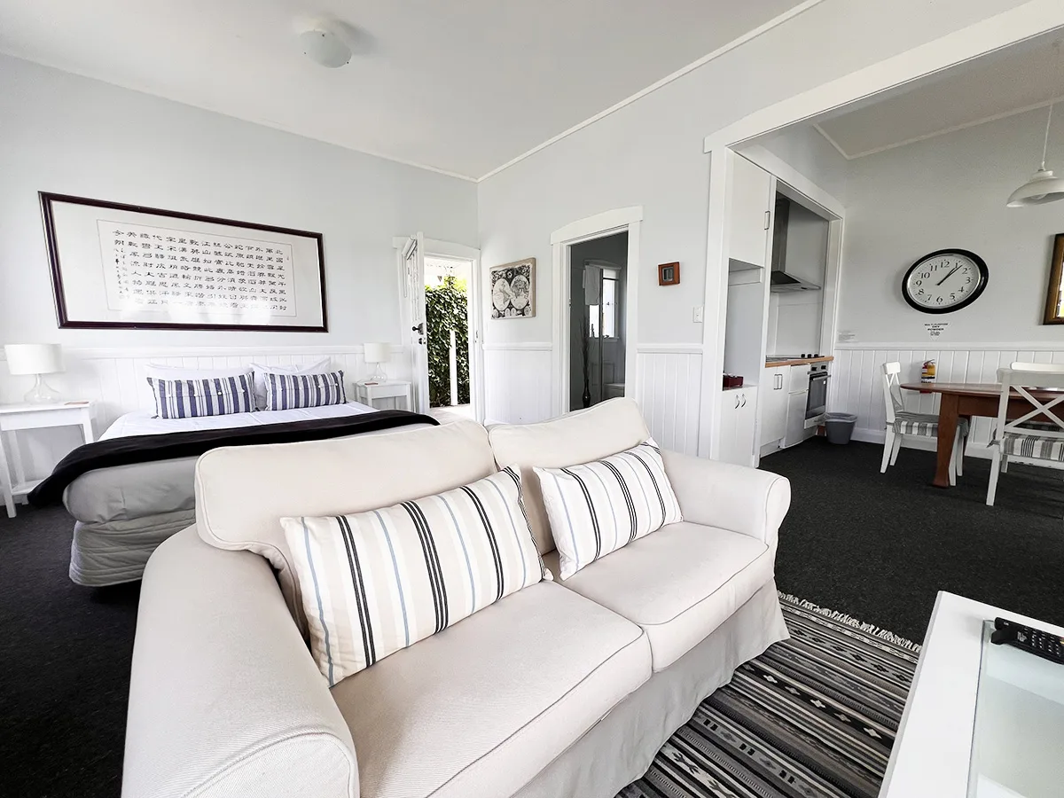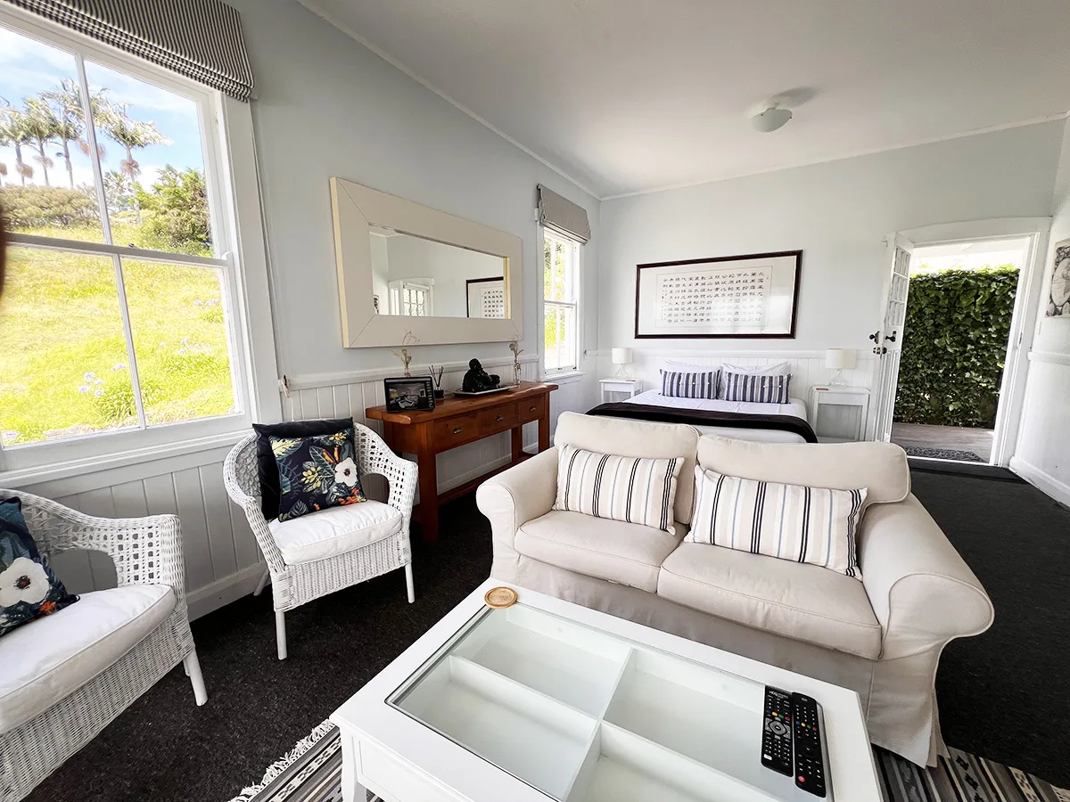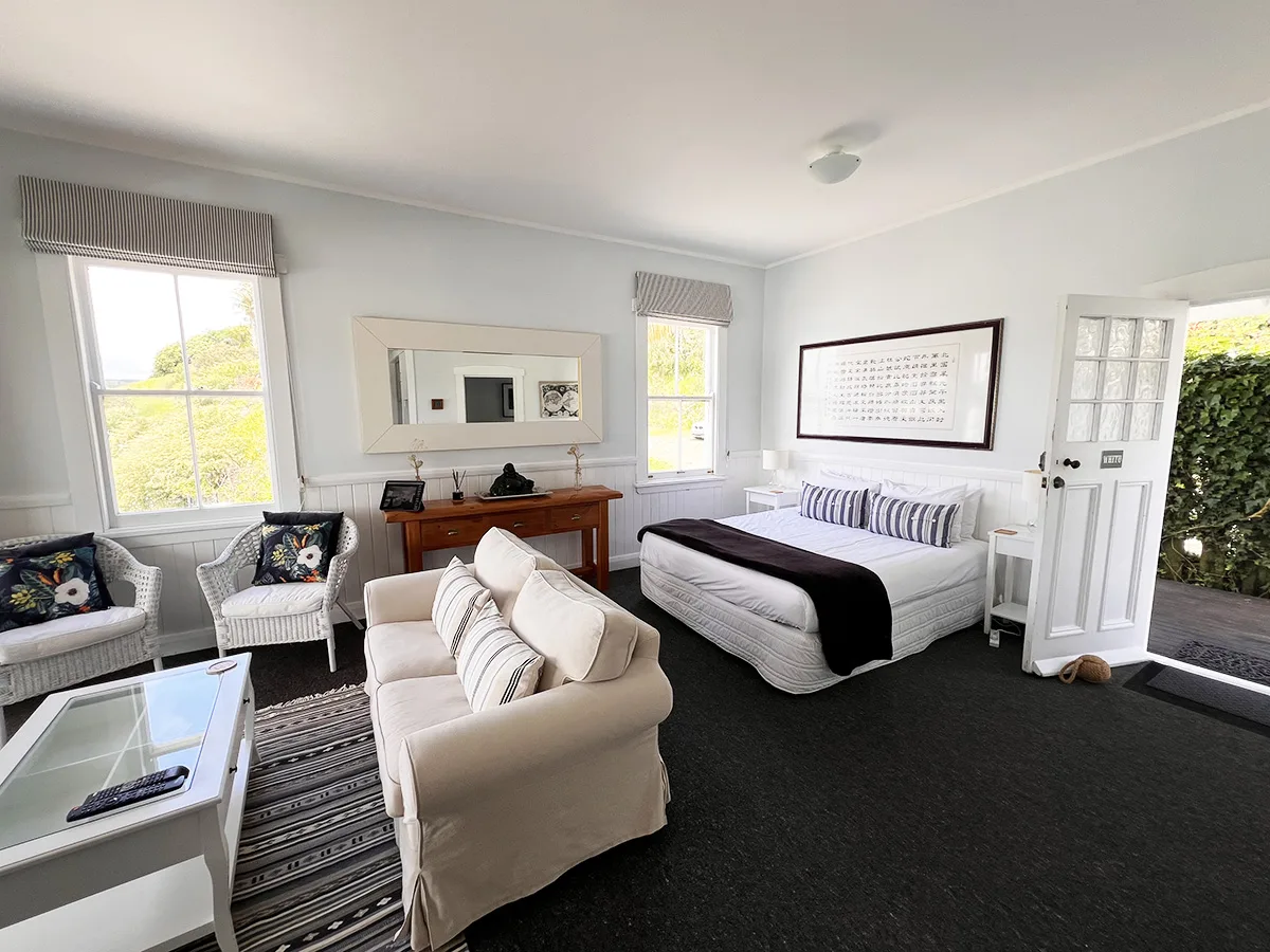 This room has a kitchenette and a BBQ, so you can cook for yourself or bring a meal back from one of Mangonui’s fabulous cafes and restaurants to enjoy in one of your multiple dining areas.